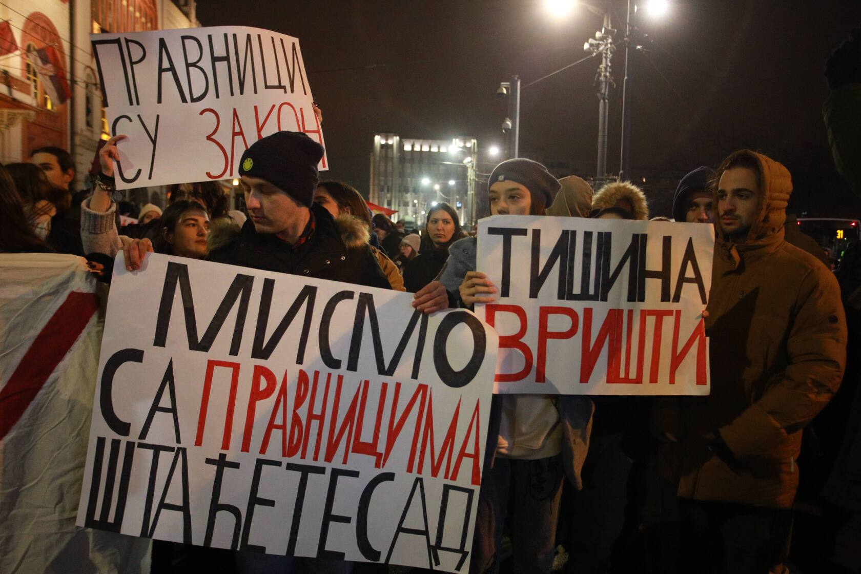 Skup „Mi smo za pravdu. I, šta ćemo sad?“ studenata i građana počeo je oko 19 sati ispred zgrade Rektorata Univerziteta u Beogradu na Studentskom trgu, odakle su se okupljeni u povorci došli do Pravnog fakulteta udaljenog petnaestak minuta hoda.