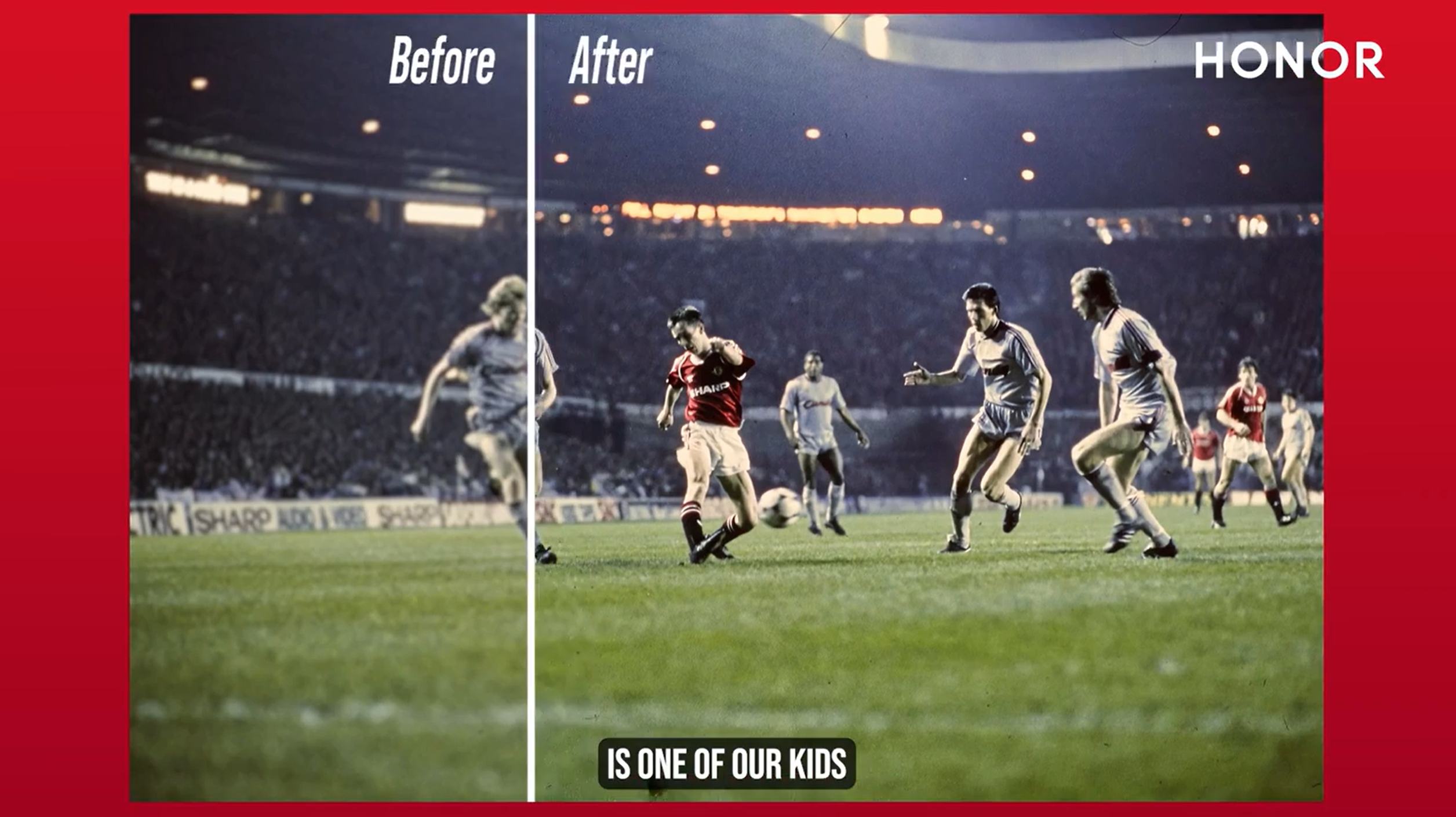 Novi HONOR Magic7 Pro donosi širok spektar moćnih AI funkcija za fotografisanje, uključujući AI Super Zoom, AI Enhanced Portrait i AI Motion Sensing Capture. Njegova interno razvijena funkcija AI Upscale predstavlja novitet koji korisnicima omogućava lako obnavljanje oštećenih ili izbledelih starih portreta – uklanjanjem ogrebotina, poboljšanjem rezolucije i povećanjem jasnoće, čime se dragocene uspomene vraćaju u život. AI Upscale na HONOR Magic7 Pro obnovio je i unapredio više od 40 fotografija iz Old Trafford arhive, pretvarajući izbledele uspomene u vizuelno osvežene slike dostojne 21. veka, kako bi prikazala ovu tehnologiju i pokazala inovativno sponzorstvo kompanije Qualcomm Technologies sa klubom u stvaranju jedinstvenih iskustava za navijače sa svojim partnerima.