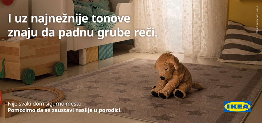 Porodično nasilje je velika i ozbiljna tema kojoj treba posvetiti posebnu pažnju. To je prepoznala i IKEA Srbija, koja je pokrenula kampanju protiv nasilja u porodici „Siguran dom je bolji dom“. Neke od ključnih poruka ove kampanje su sledeće: „I najlepši dom ponekad krije ružniju istinu. I najsvetlija soba ponekad skriva mračnije tajne. I uz najnežnije tonove ponekad znaju pasti grube reči. I s najmekšeg jastuka može se tvrdo pasti.“