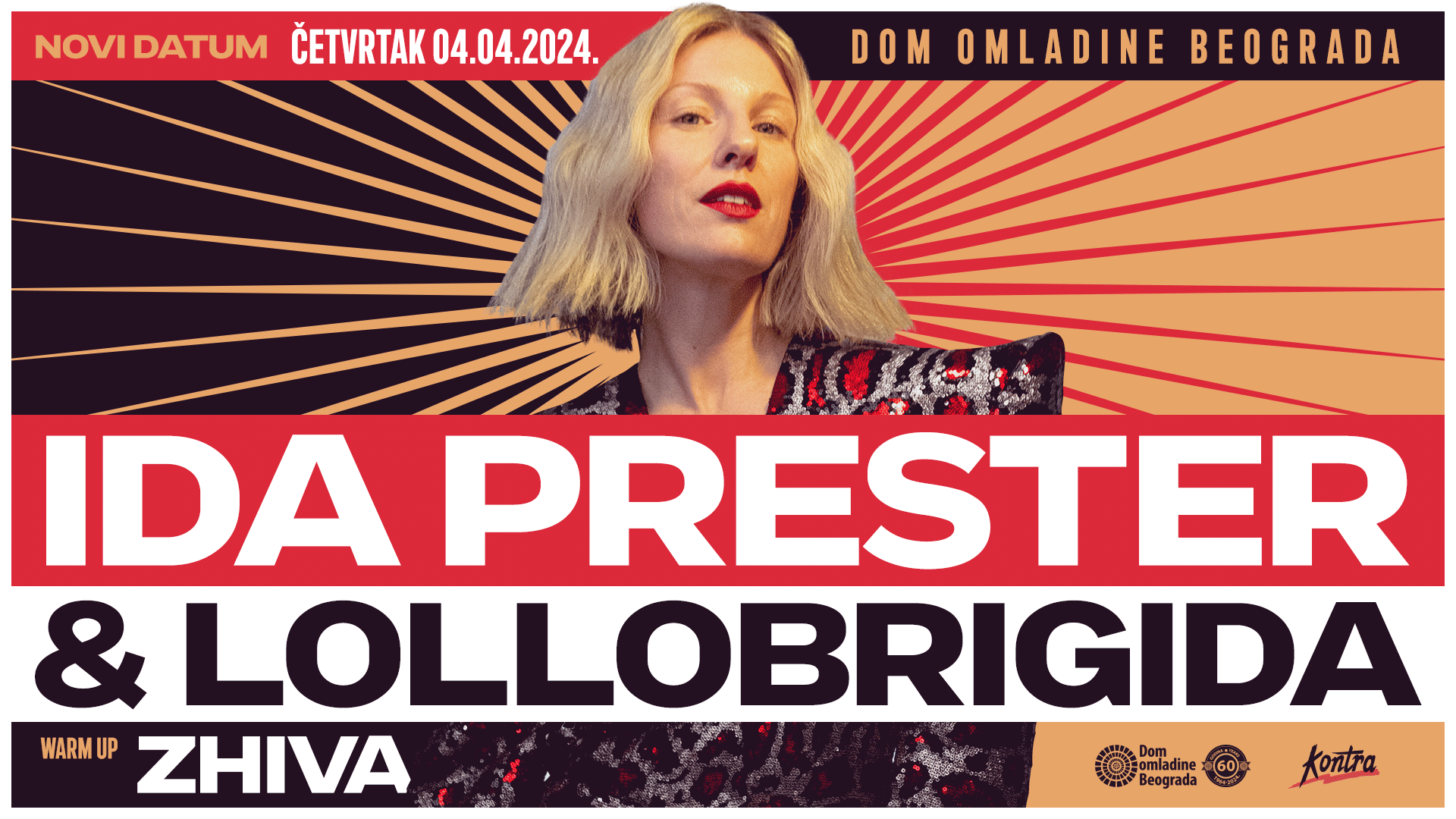 Regionalna indi pop ikona Ida Prester zajedno sa bendom Lollo-brigida zakazala je dva koncerta za 4. i 5. april u Domu omladine u Beogradu.