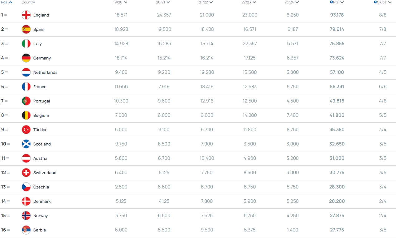 Naravno, treba nagalsiti da je sve još uvek veoma otvoreno, i da to što je Srbija trenutno na 15. mestu ne mora značiti da će tako i ostati. Uspe li Crvena zvezda da prezimi u Evropi (u prevodu – da završi kao trećeplasirana i izbori prolazak u Ligu Evrope) situacija bi mogla da se popravi. Ali ne previše.