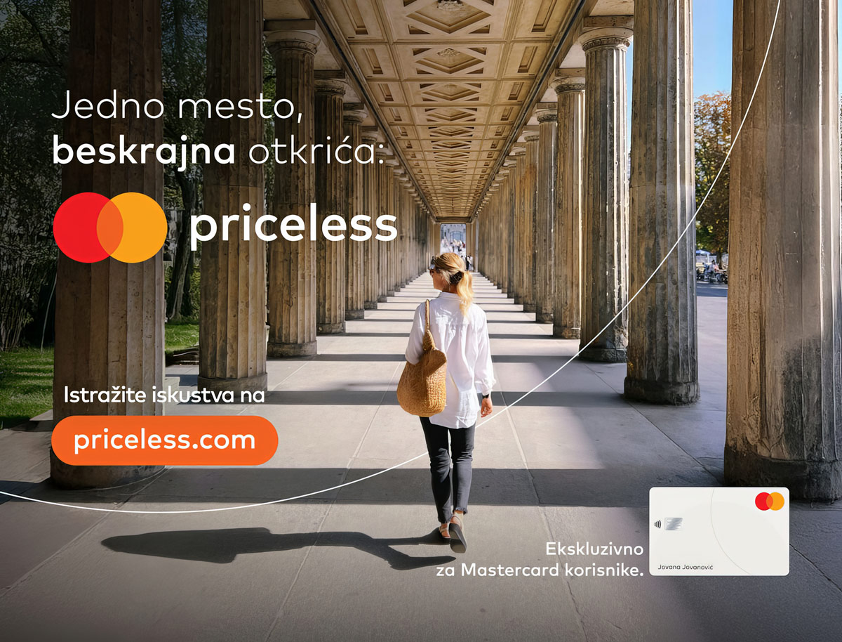 U vremenu kada se potrošačke navike brzo menjaju, Mastercard donosi globalnu platformu Priceless™ na tržište Srbije, otvarajući im vrata ka pažljivo osmišljenim i jedinstvenim iskustvima. Bilo da je reč o putovanjima, vrhunskim gastronomskim doživljajima, koncertima, umetničkim izložbama ili sportskim manifestacijama, platforma priceless.com pruža priliku za stvaranje nezaboravnih iskustava koja ostaju za ceo život. Mastercard svojim korisnicima ne nudi samo pogodnosti – već ih podstiče da prepoznaju pravu vrednost života, kroz nova iskustva i bliskost sa drugima, podsećajući korisnike na to da su uspomene ono najvrednije što ostaje.