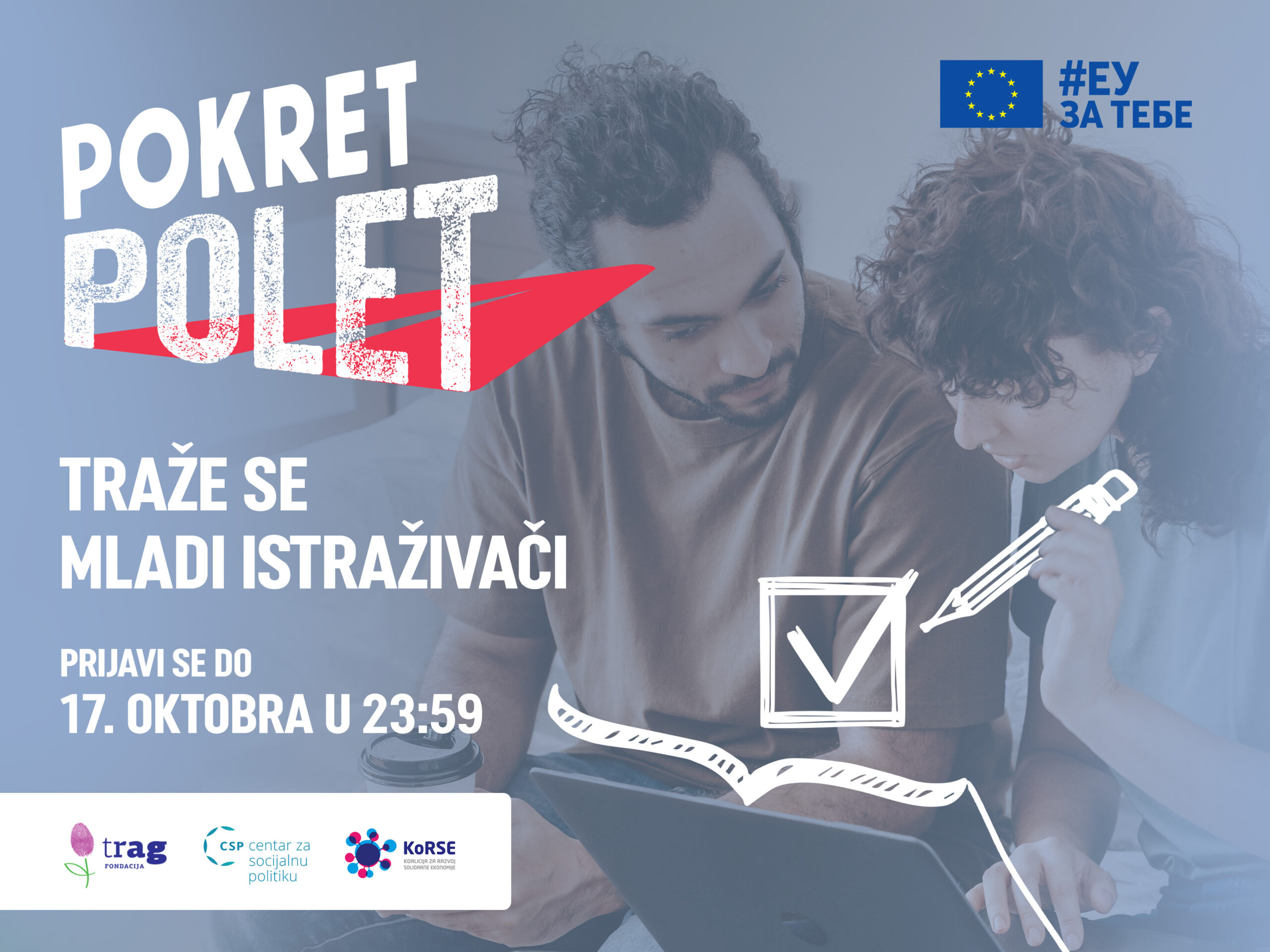 Ako ste mladi i svojim istraživačkim radom želite da doprinesete sistemskim promenama u društvu – prijavite se. Trag fondacija, u okviru trogodišnjeg programa „Pokret Polet“, objavila je drugi konkurs za mlade istraživače/-ice, namenjen akademskim građanima starosti do 30 godina. Program se sprovodi u partnerstvu sa Centrom za socijalnu politiku i u saradnji sa Koalicijom za razvoj solidarne ekonomija (KoRSE), uz finansijsku podršku Evropske unije.