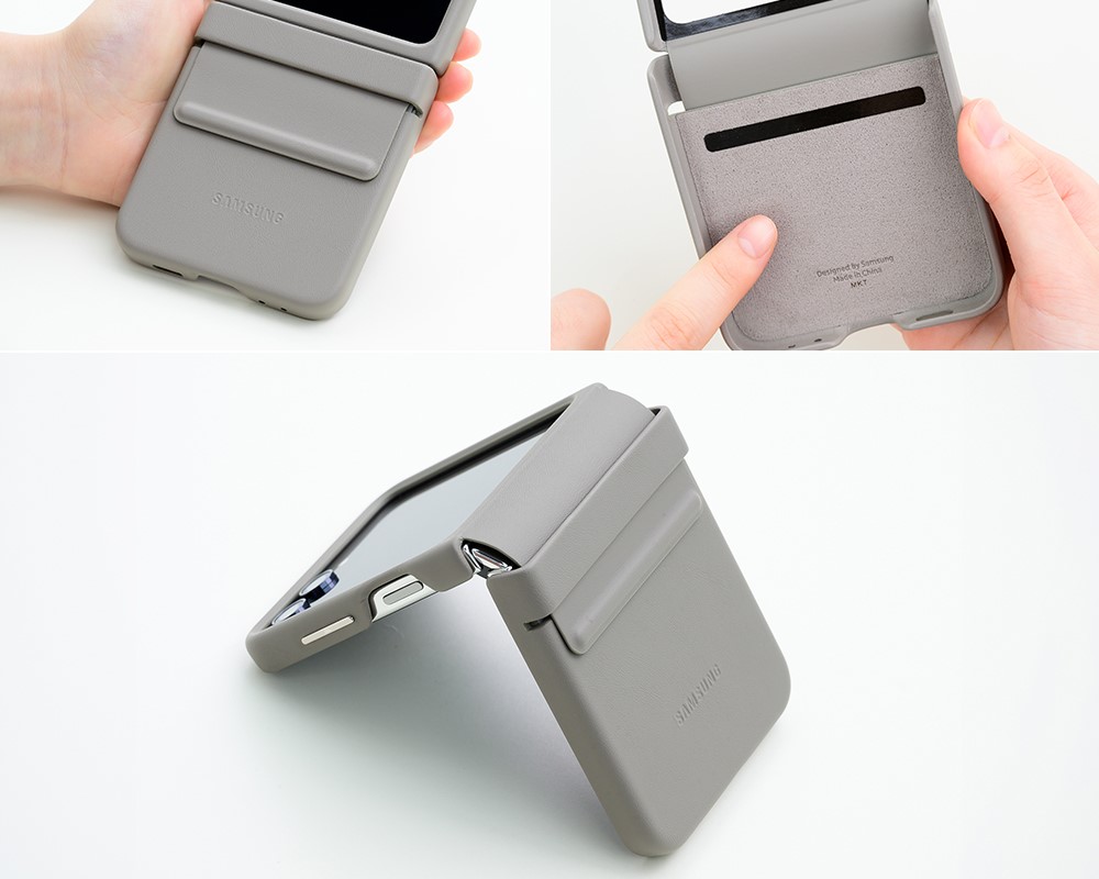 Kao i Galaxy Z Fold5 futrola od eko-kože, Galaxy Z Flip5 Flap futrola od eko-kože je napravljena od kože na biljnoj bazi za izdržljiv dizajn koji traje. Šik futrola je dobijena iz izvora na bio i biljnoj bazi, kao što je kukuruz i od recikliranih plastičnih materijala za unapređeni, održivi osećaj. Da bi originalna šarka modela Galaxy Z Flip5 ostala zaštićena tokom korišćenja, Galaxy Z Flip5 Flap futrola od eko-kože obuhvata i nju radi dodatne zaštite.