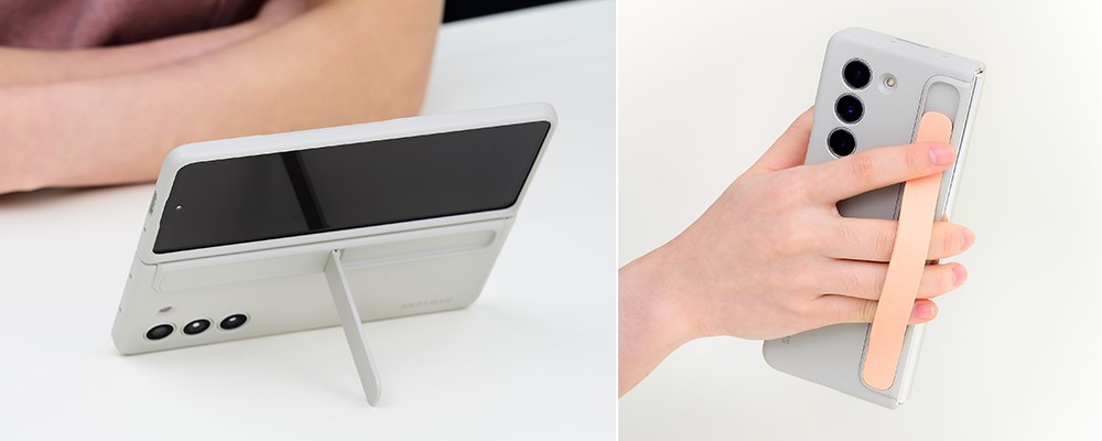 Postolje nudi odlično iskustvo gledanja bez korišćenja ruku na modelu Galaxy Z Fold5, dok odvojivi kaiš služi za stabilno i bezbedno držanje telefona radi lakog nošenja.