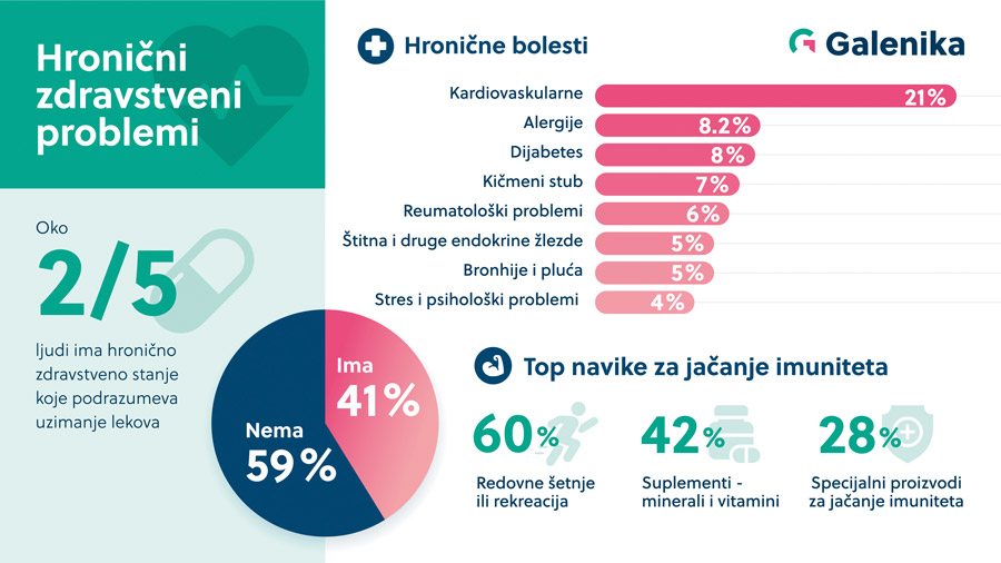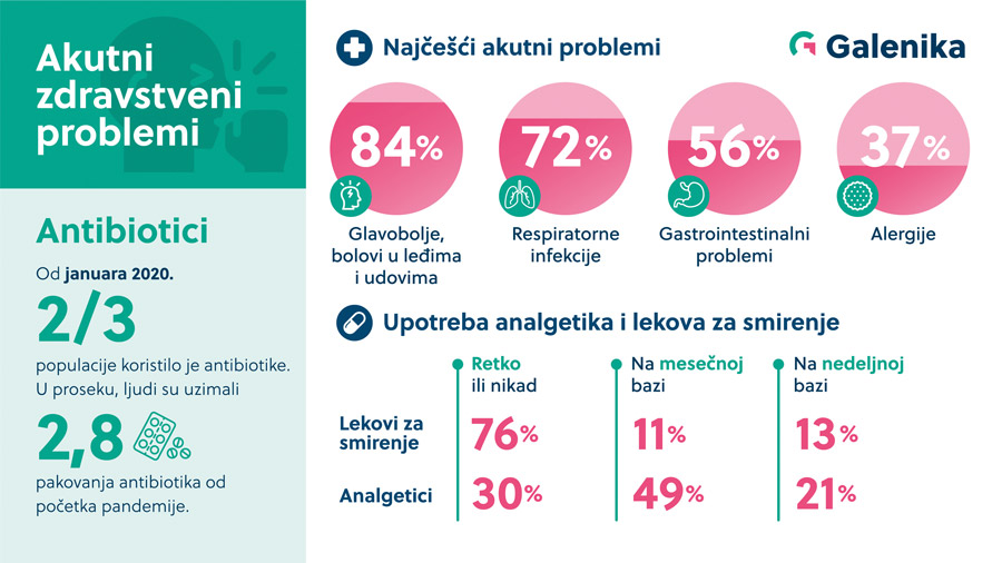 Farmaceutska kompanija Galenika organizovala je nacionalno istraživanje o zdravstvenom stanju i upotrebi lekova u Srbiji. Istraživanje je realizovano sa ciljem da se stekne uvid u situaciju nakon, odnosno zbog pandemije. Navike i potrebe građana Srbije se menjaju, a svest o značaju prevencije bolesti kao i potrebi podizanja svesti o zdravstvenim rizicima i izazovima je evidentna.