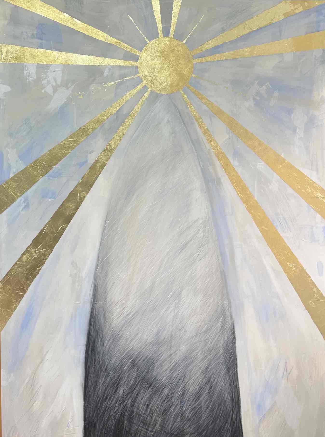 U središtu pažnje nalaze se slike na platnu velikih formata, prepoznatljive po ekspresivnim potezima ugljena, sofisticiranoj upotrebi pozlate i bogate ultramarin plave boje.