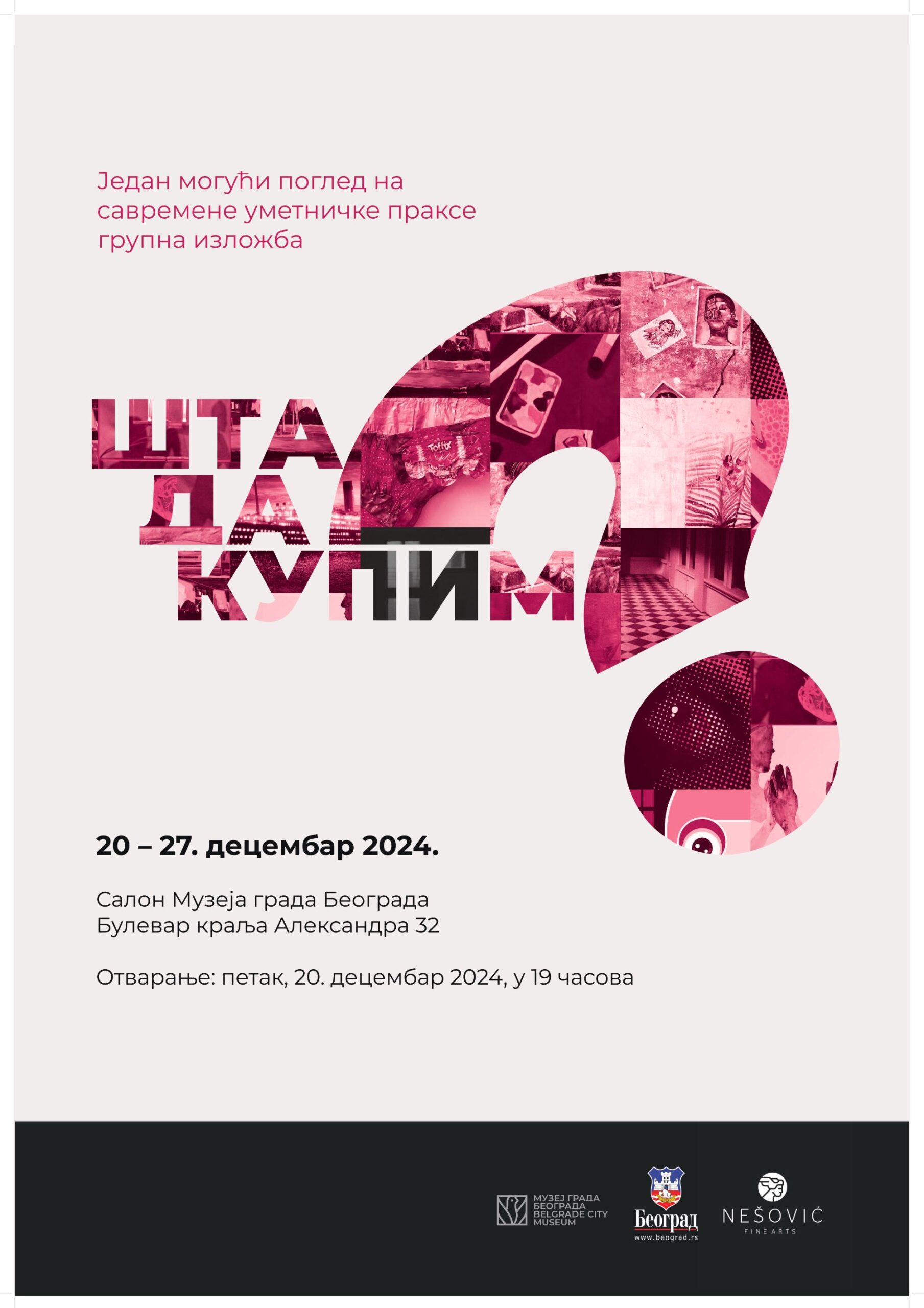 Izložba radova savremenih domaćih umetnika „Šta da kupim?“ biće otvorena u petak, 20. decembra u 19 časova u Salonu Muzeja grada Beograda (Bulevar kralja Aleksandra 32).