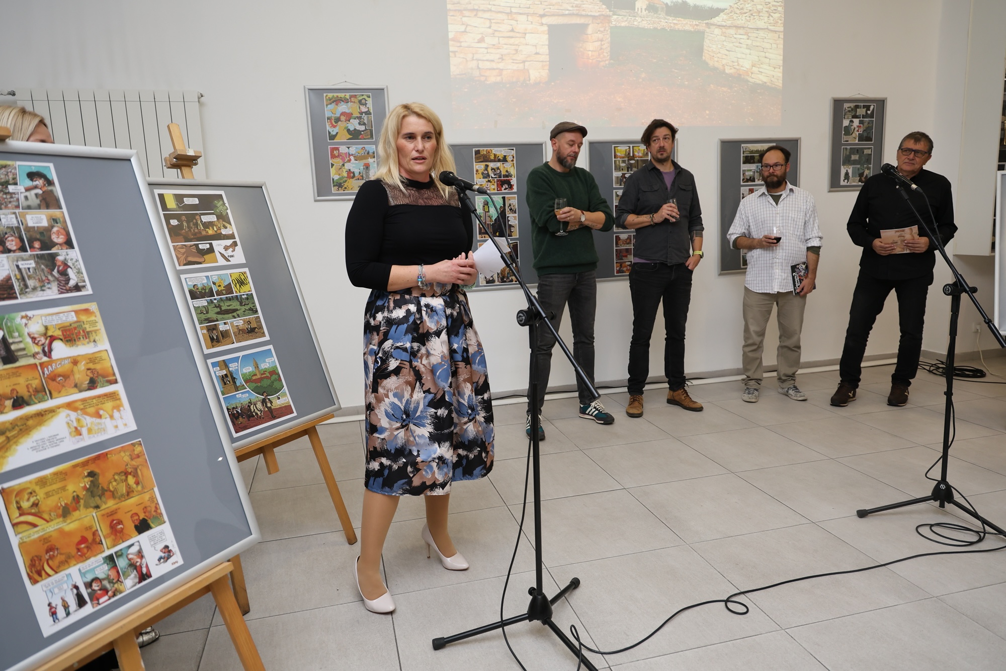 Na otvaranju su se obratili Morena Smoljan Makragić direktorka Turističke zajednice grada Vodnjana, Milan Rašula direktor Srpskog kulturnog centra u Puli, autori stripa Vjeran i Vibor Juhas iz Pule, kao i beogradski strip autor Aleksa Gajić i poznata vodnjanska kuvarica Svjetlana Celija, čuvena po pripremi tradicionalne „Torte de mandole“ takozvane Bumbarske torte od badema, simbola grada Vodnjan.