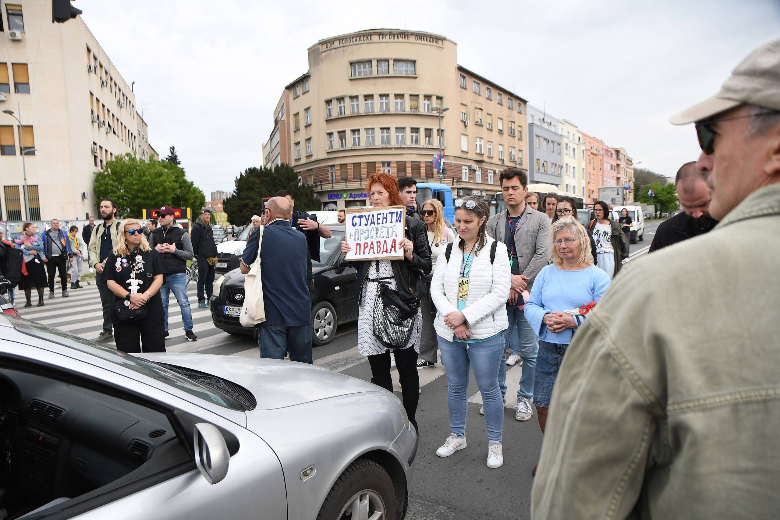 Protest ispred skupštine trajao je do 11:52, da bi se zatim svi preselili na raskrsnicu kraj zgrade Banovine, gde je odata pošta preminulima ispod nadstrešnice, 1. novembra 2024.