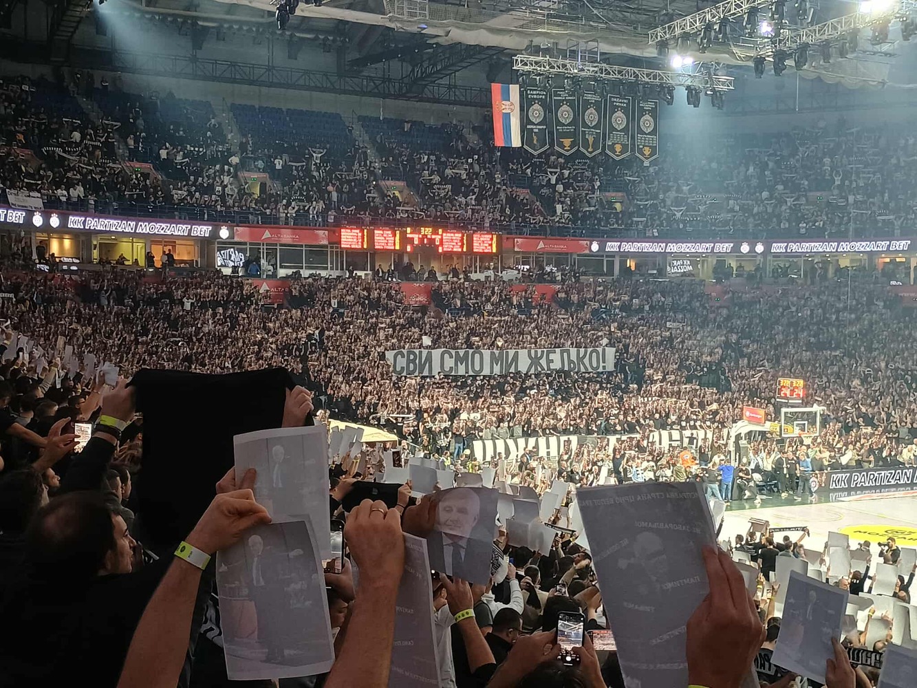 Na samom početku meča, navijači Partizana su skandirali „Obradović Željko“ u čast najtrofejnijem evropskom treneru koji je odlučio da napusti klub nakon poraza od Panatinaikosa prošle nedelje.