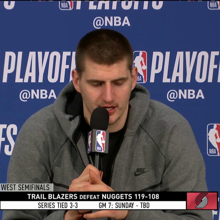 Nikola Jokić je na konferenciji za štampu posle sinoćne, šeste utakmice u polufinalu Zapadne konferenicije između Denvera i Portlanda, imao spceijalnu poruku za košarkaša iz Bosne i Hercegovine Jusufa Nurkića, koji kraj sezone propušta zbog teške povrede.