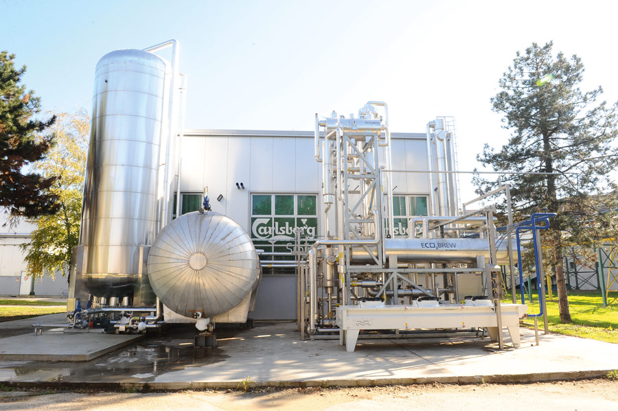 Carlsberg Srbija je u svojoj pivari u Čelarevu izgradila postrojenje za prečišćavanje otpadnih voda, koje je zvanično pušteno u rad još 2010. godine. Postrojenje uključuje i proces tercijarnog prečišćavanja otpadnih voda, a kao izlaz dobija se prečišćena voda velike čistoće. Pored toga, deo procesa prečišćavanja otpadnih voda predstavlja i postrojenje za proizvodnju biogasa. Nakon faze prečišćavanja, biogas se transportuje do sabirnog rezervoara, odakle se po potrebi distribuira prema kotlu za sagorevanje. Od 2018. godine u funkciji je i kotao za biomasu, koji koristi kao gorivo drvenu sečku. Danas, zajedno, biogas i drvena sečka zamenjuju 35% prirodnog gasa koji se koristi u pivari.