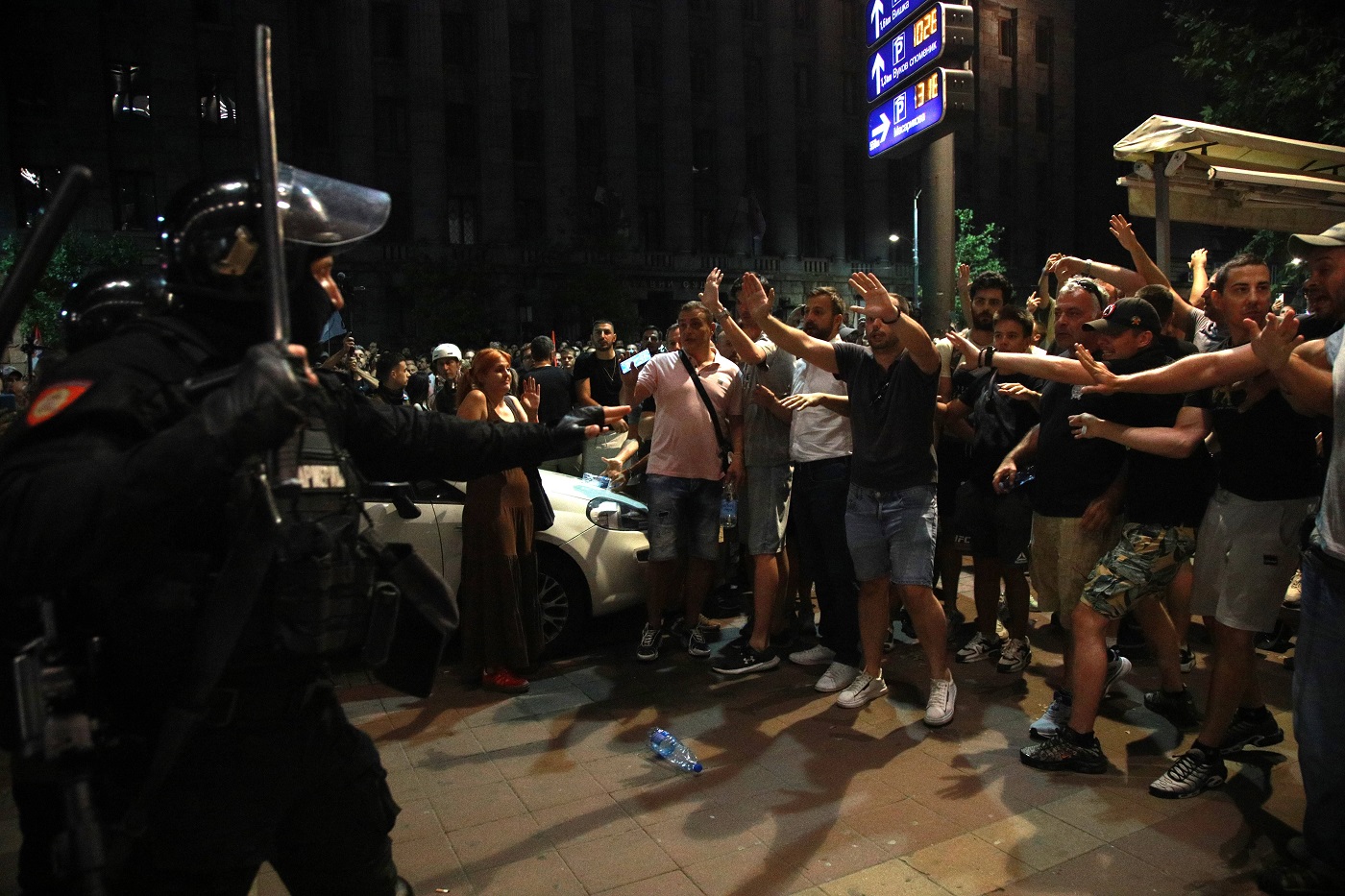 Njegovo obraćanje je direktno emitovala TV Pink, tokom gostovanja predsednika Srpske napredne stranke (SNS) Miloša Vučevića koji je izjavio da je po informaciji iz Kliničko bolničkog centra Vojvodine, povređeno 65 osoba, od toga 10 policajaca, navodeći da je povređeno sedam pripadnika jedinice „Kobre“.
