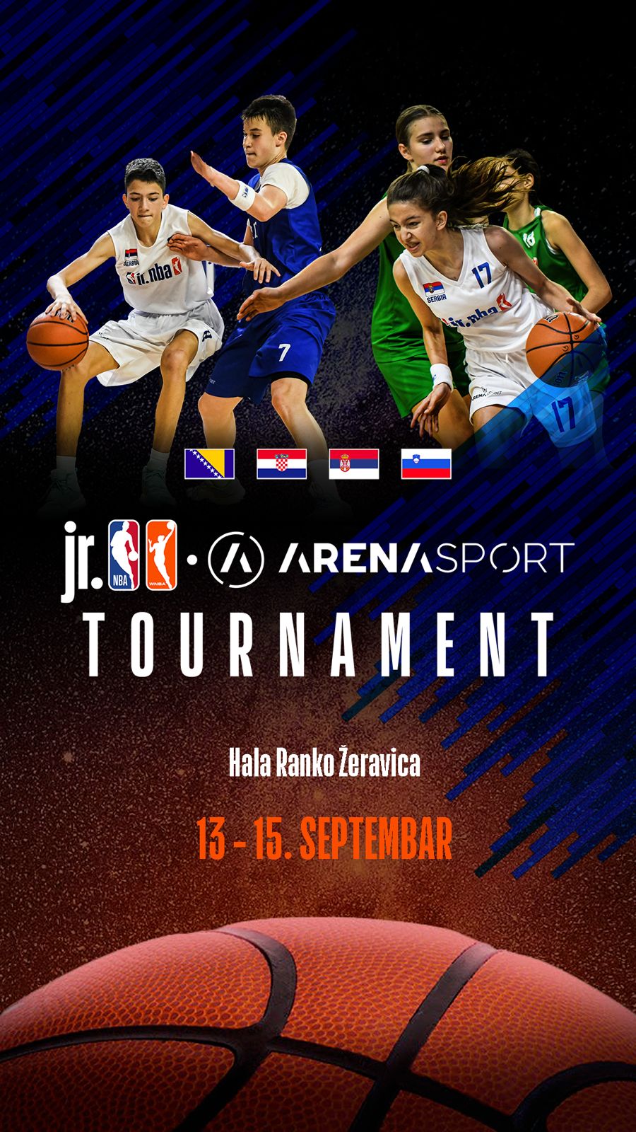 NBA (National Basketball Association) je danas objavila da će 88 dece uzrasta 13-14 godina koja se bave košarkom iz Bosne i Hercegovine, Hrvatske, Srbije i Slovenije uzeti učešće na drugom po redu Jr. NBA/Jr. WNBA Arena Sport turniru koji će biti održan u Beogradu od petka 13. do nedelje 15. septembra. Ambasadori NBA i WNBA za Evropu Igor Rakočević, Dalibor Bagarić i Sonja Vasić svojim prisustvom će uveličati događaj, uručiti najboljim timovima dečaka i devojčica šampionske prstenove, majce i kačkete Jr.NBA – i dodeliti MVP nagrade Jr. NBA/Jr. WNBA Arena Sport za najboljeg igrača i igračicu finala turnira.