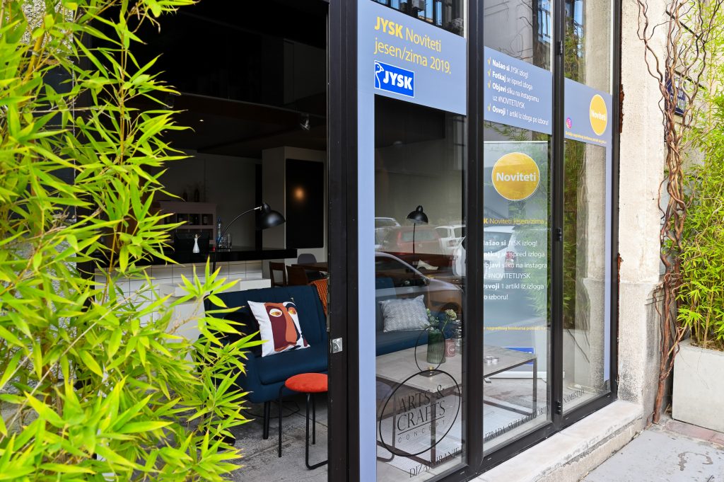 Izlog u centru Beograda potpuno uređen novim artiklima u tri jesenja trenda iz JYSK ponude dočekao je građane koji u narednim nedeljama imaju prilike zaviriti i dobiti uvid u ono što ih od ove jeseni očekuje na policama JYSK prodavnica i to unutar kategorija proizvoda: nameštaj, tekstil za dom i dekoracije. Novi trendovi za uređenje enterijera pripremili su zanimljivu jesen. Svaki je različit spoj senzacija, boja, oblika i materijala, a ceo asortiman je koherentan kako bi bilo lakše kombinovati drugačije proizvode na različite načine. Novi trendovi nose naziv Reflexion, The Next Wave i Memphis.