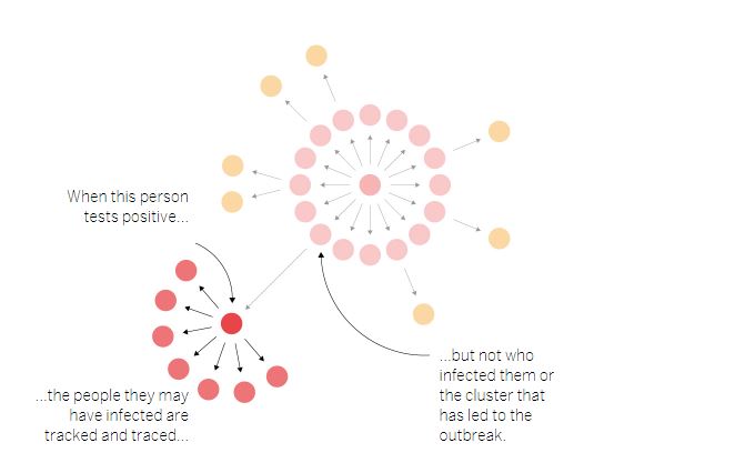 Uobičajenim traženjem kontakata, zaražena osoba koja je pod nadzorom ima malu verovatnoću da prenese virus. Ali osoba koja ih je zarazila verovatno spada u onih 10 do 20 odsto odgovornih za 80 odsto svih slučajeva. Ta osoba je mogla da izazove više infekcija.