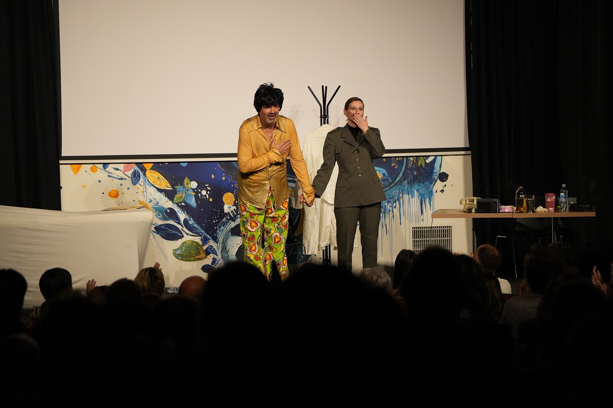 Publika je i ovog puta u prostoru Fondacije Mozzart potpuno besplatno uživala u sjajnoj glumačkoj igri Mine i Srđana, koji su predstavili birokratski okršaj — lekara i regruta, ali i sistema i običnog čoveka.