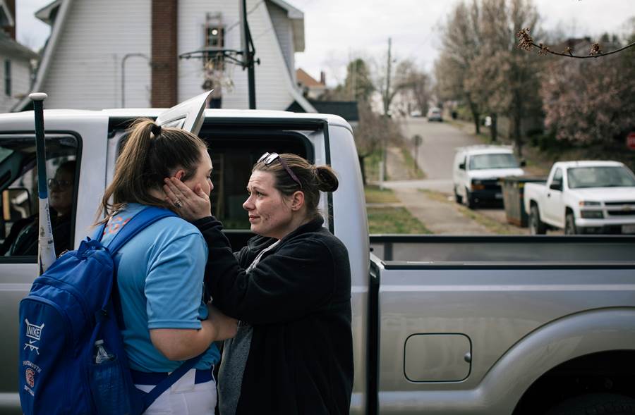 Više od polovine članova softbol tima srednje škole u Portsmutu ima članove uže porodice koji su zavisni od opioida, a mnogi od njih žive sa bakama i dekama ili komšijama, kaže Kristen Bredšo, koja je trener softbola i često organizuje doručke pred utakmice vikendom.