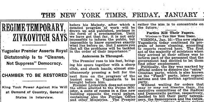 Tek, dva dana kasnije, na 30. strani „Njujork tajmsa“, ne previše istaknuto, objavljen je nepotpisani izveštaj sa naslovom: „Kralj je postao diktator“.
