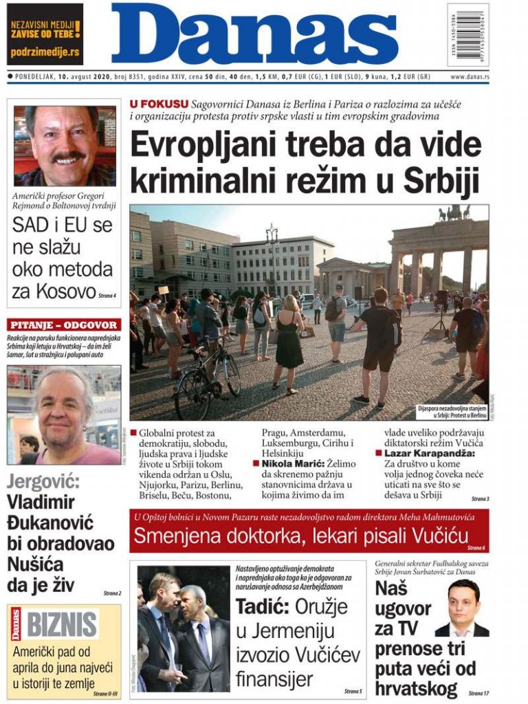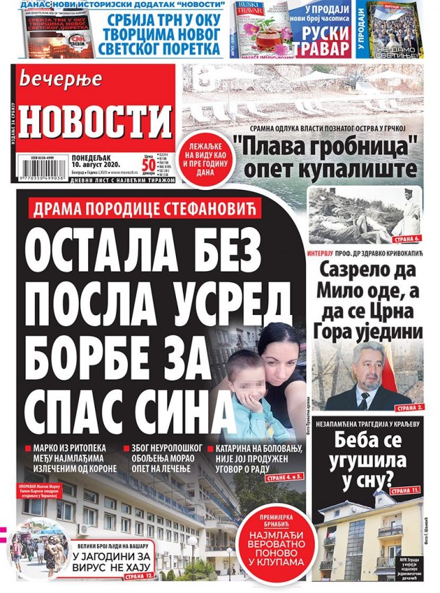 NASLOVNE STRANE DNEVNIH NOVINA: