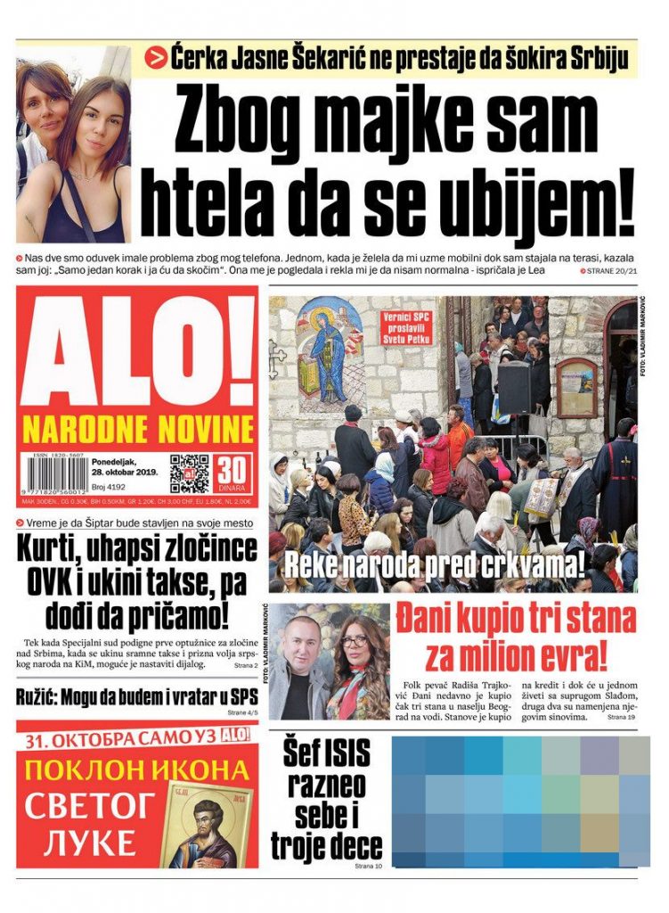 NASLOVNE STRANE DNEVNIH NOVINA: