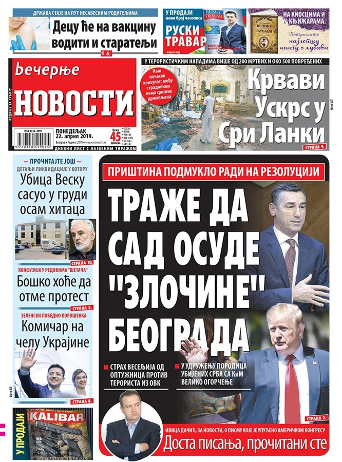 TRAMP NUDI POMOĆ ŠRI LANKI – Predsednik Sjedinjenih Američkih Država Donald Tramp izrazio je saučešće narodu Šri Lanke i ponudio pomoć Vašingtona povodom serije bombaških napada u kojima je stradalo više od 200 osoba.