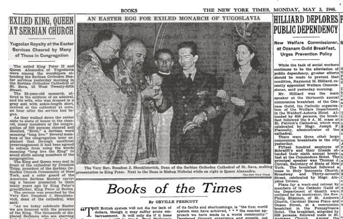 U članku objavljenom 3. maja 1948. godine, uz sliku kraljevskog para Karađorđević, navodi se da su jugoslovenski kralj u egzilu Petar II i njegova supruga Aleksandra zajedno sa ostalim vernicima prisustvovali uskršnjoj liturgiji u crkvi.
