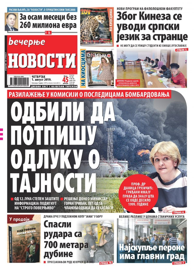 NASLOVNE STRANE DNEVNIH NOVINA:
