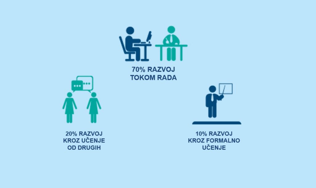 Prema ovom konceptu, 70 procenata usavršavanja svakog od nas treba da se dogodi tokom obavljanja poslovnih aktivnosti. Nije bitno da li ste početnik ili se nalazite na nekoj od viših pozicija, postoji mnogo načina na koje se svi usavršavamo upravo na radnom mestu.