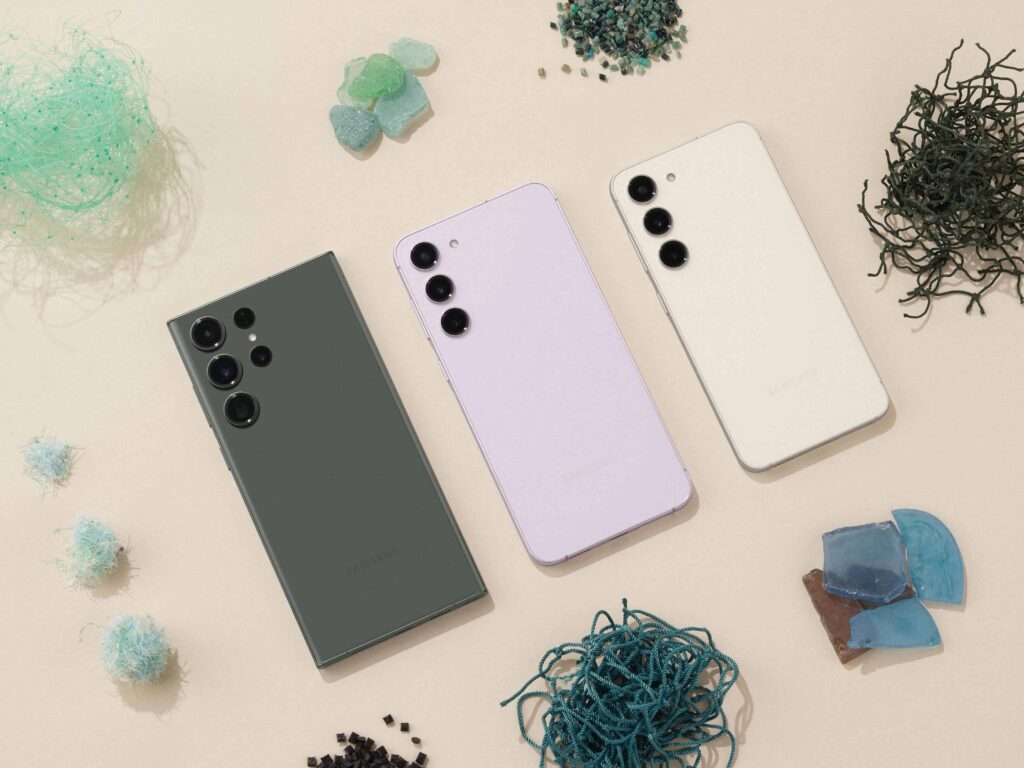 U odnosu na Galaxy S22 seriju, Samsung povećava upotrebu komponenti izrađenih od recikliranih materijala poput recikliranog aluminijuma i stakla, prerađenu plastiku od odbačenih ribarskih mreža, balona za vodu i boca od polietilen tereftalata (PET). Da je naglasak na održivosti svedoči i Corning® Gorilla® Glass Victus® 2 zaštitno staklo, koje pruža otpornost i dugotrajnost, a sadrži 22% recikliranih materijala. Cela Galaxy S23 serija pametnih telefona nosilac je UL ECOLOGO® sertifikata koji daje garanciju da proizvod smanjuje uticaj na životnu okolinu i tako doprinosi očuvanju prirode.
