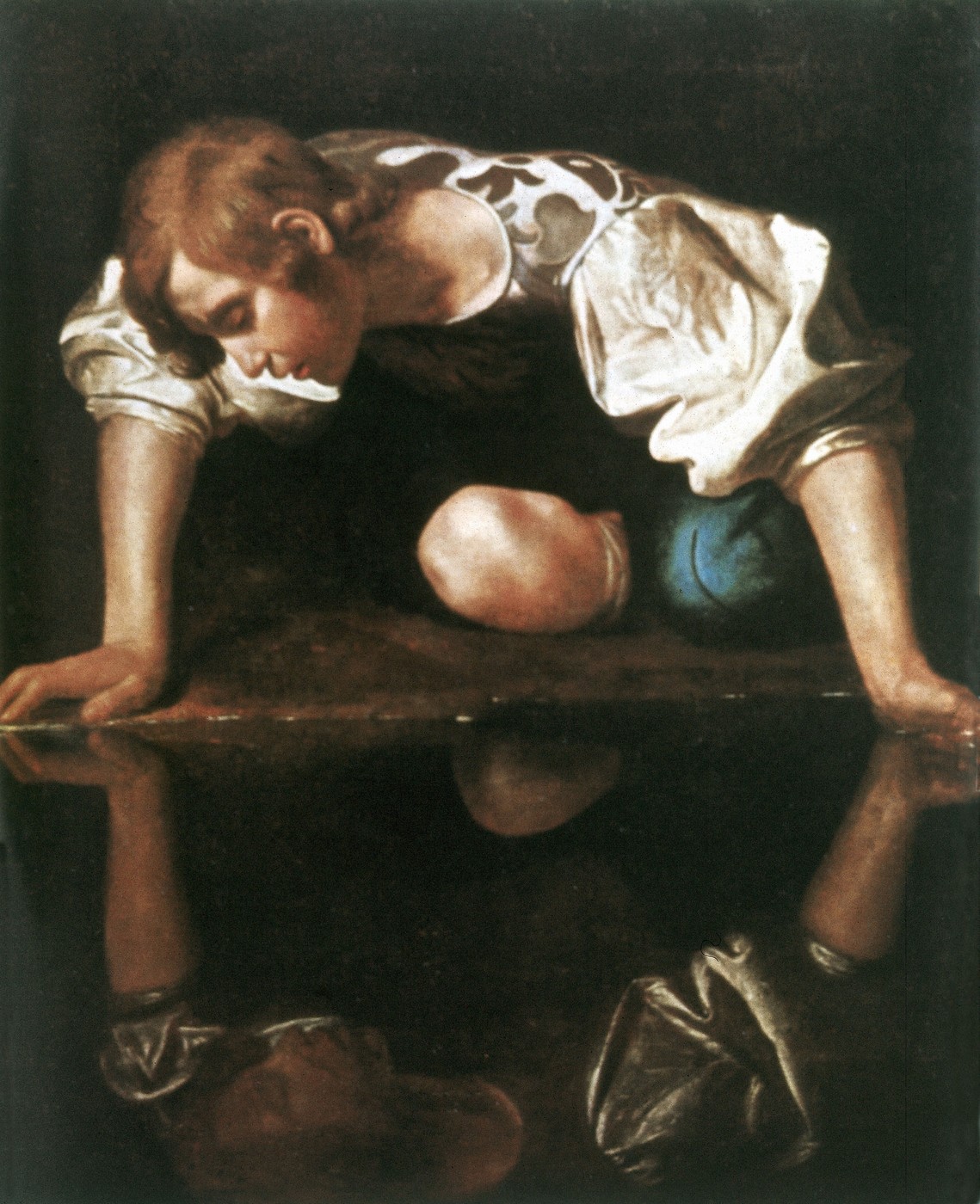 „Očima punim ljubavi posmatra svoj lik u vodi, mami ga, zove, pruža ruke ka njemu. Naginje se nad ogledalo vode da poljubi svoj lik, ali ljubi samo studenu, bistru izvorsku vodu. Narcis je sve zaboravio; on ne odlazi sa izvora; ne odvajajući se od njega, divi se samom sebi, svojoj lepoti.“