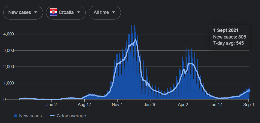 Broj zaraženih u Hrvatskoj od početka pandemije do 1. septembra