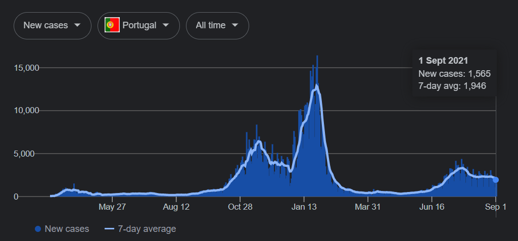 Broj zaraženih u Portugaliji od početka pandemije do 1. septembra
