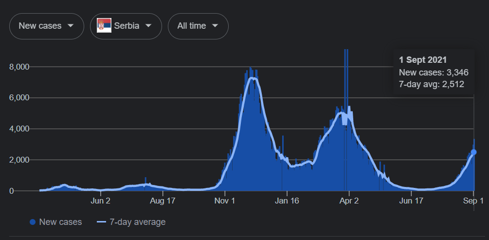 Broj zaraženih u Srbiji od početka pandemije do 1. septembra