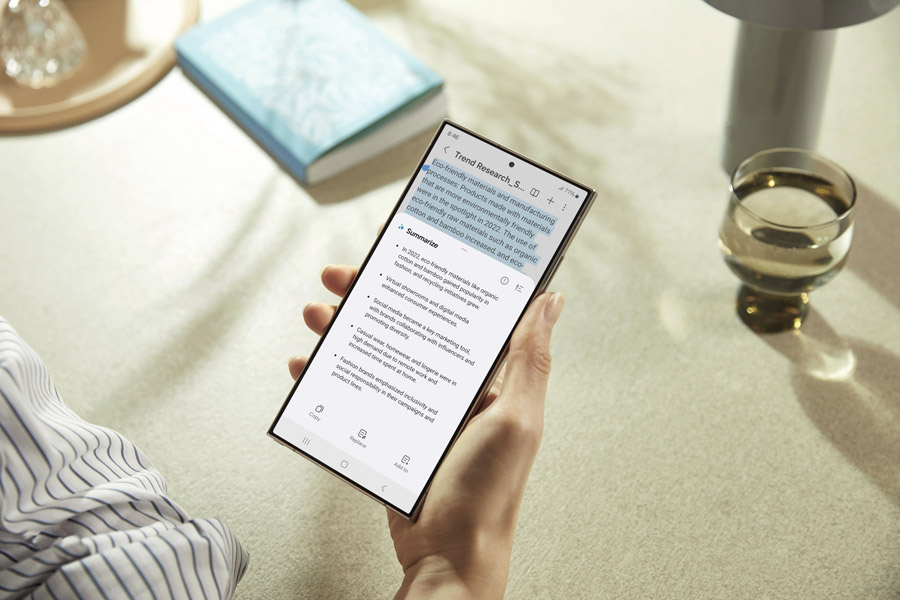 Galaxy AI naglašava inteligentne funkcije i karakteristike koje unapređuju vaše svakodnevno iskustvo korišćenja pametnog telefona i uklanjaju prepreke koje mogu ograničiti vaš puni potencijal. Na primer, Note Assist funkcija na Samsung Galaxy S24 seriji telefona pruža korisnicima intuitivan način za organizaciju beležaka i upravljanje sadržajem. Jedna od ključnih karakteristika Note Assist funkcije je sposobnost prepoznavanja i konverzije ručno napisanih beležaka u digitalni format. Time korisnici mogu lako beležiti ili skicirati ideje pomoću S-pen olovke, koju zatim Note Assist automatski preobražava u čitljiv tekst. Ovo je posebno korisno za brzo zabeležavanje ideja ili beleženje informacija tokom sastanaka, omogućavajući vam da ostanete fokusirani na bitne zadatke.