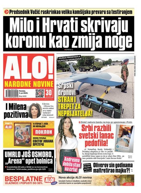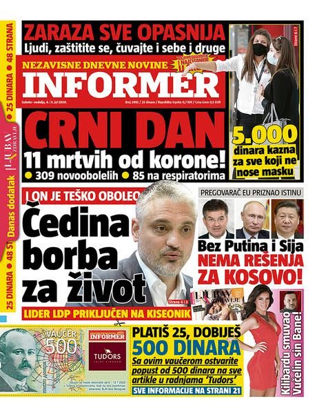 NASLOVNE STRANE DNEVNIH NOVINA: