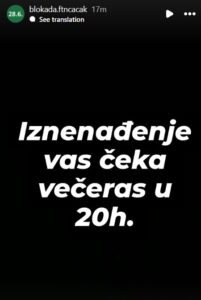 20:00 – Studenti u blokadi Fakulteta tehničkih nauka u Čačku najavili su novi protest za večeras.