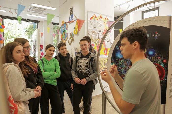 Profesorka srpskog jezika i književnosti u Gimnaziji „Uroš Predić“ Nevena Stefanović posetila je izložbu sa svojim učenicima. „Izložba ima različite kvalitete, a pre svega sam je doživela kao odličnu platformu za učenje“, rekla je ona i dodala da je zanimljivo što posetioce kroz izložbu vode mladi naučnici. „Pažnju učenika privlači to što imaju vodiča kroz izložbu, na kojoj se pripoveda o velikim naučnim dostignućima. VR tehnologija me je iznenadila – ovakav pristup omogućava pojačanu prisutnost, dodatno učešće, što je veoma važnu jer učenicima i posetiocima održava pažnju„, rekla je profesorka Nevena Stefanović.