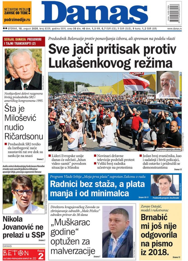OEBS PREDLAŽE LUKAŠENKU POSREDOVANJE – Predsedništvo Organizacije za evropsku bezbednost i saradnju (OEBS) predložilo je posredovanje vladi Belorusije da bi se uspostavio „otvoren i konstruktivan dijalog“, navodi se u saopštenju.