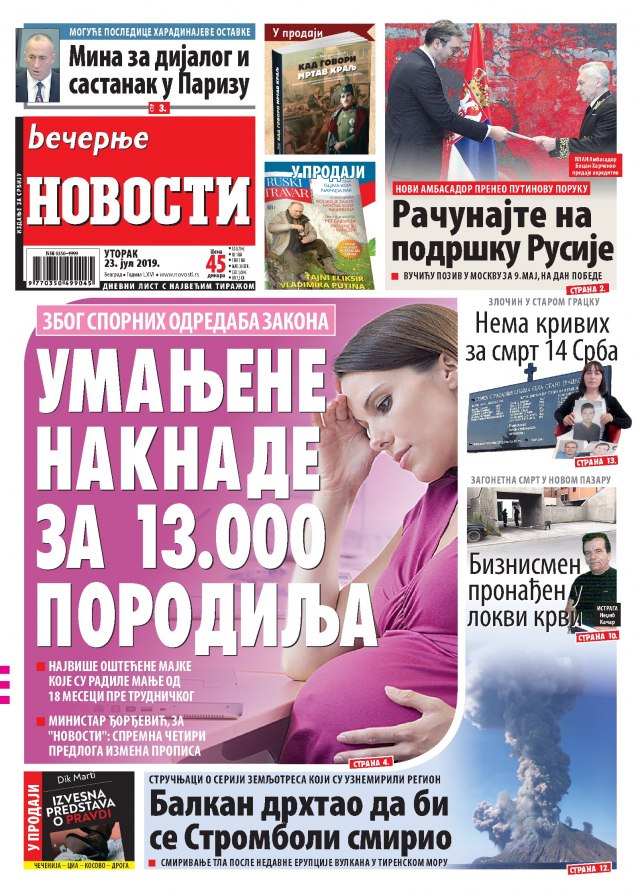 NASLOVNE STRANE DNEVNIH NOVINA: