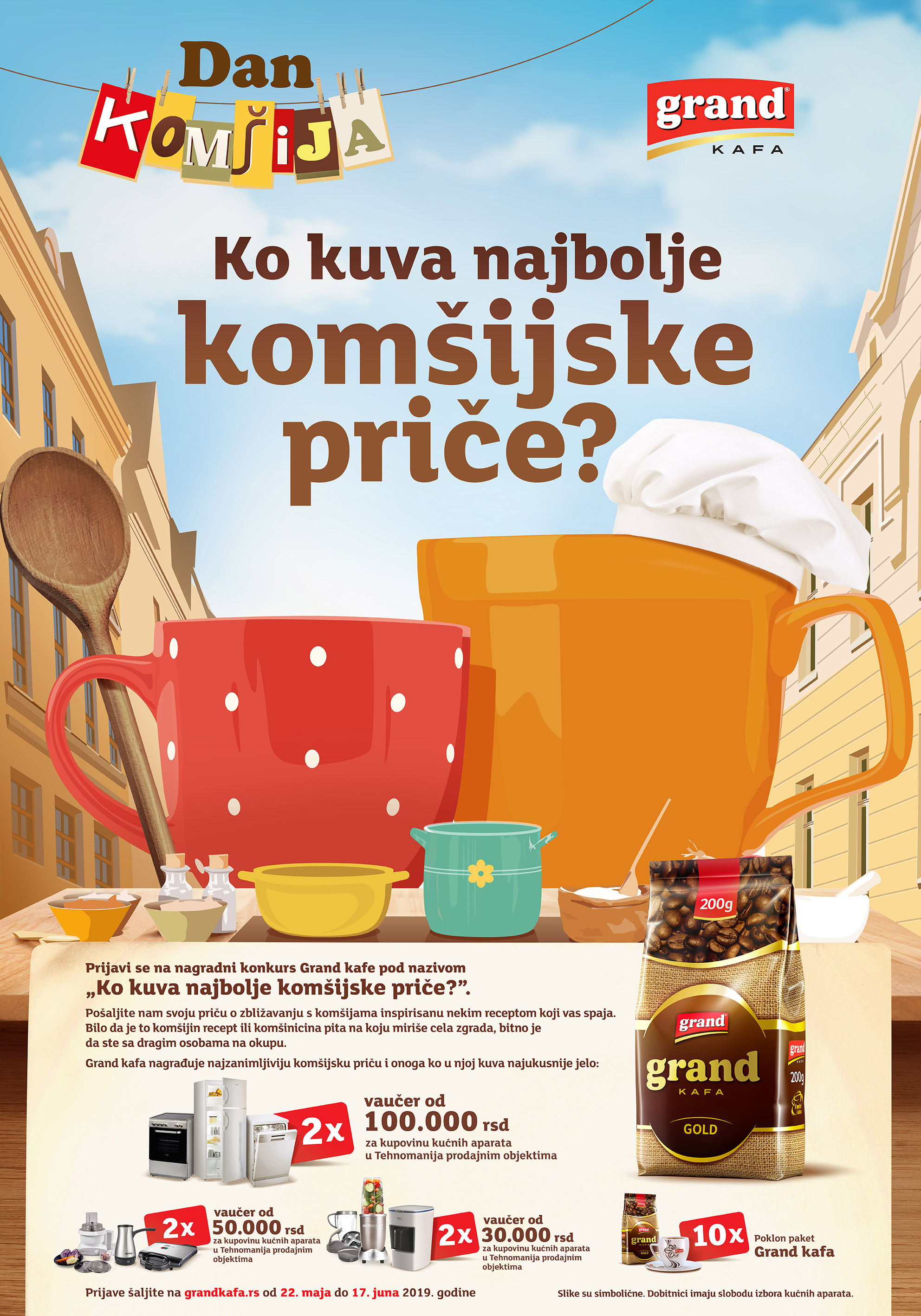 Pozivamo vas da do 17. juna 2019. godine na sajtu https://www.grandkafa.rs/ prijavite svoju komšijsku priču, inspirisanu jelom koje spaja vas i vašeg omiljenog komšiju i osvojite vredne nagrade!