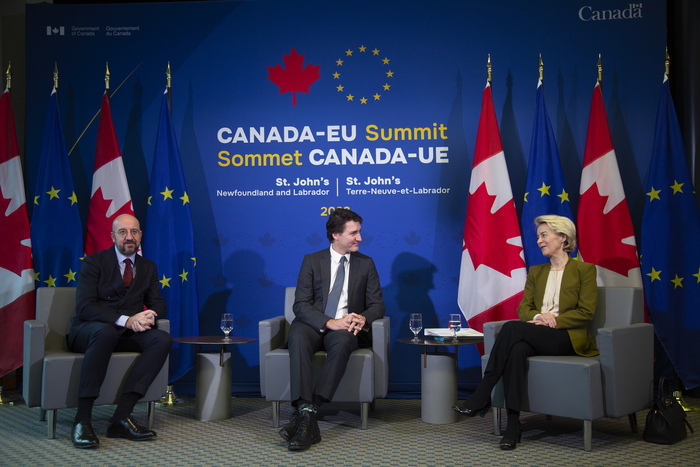 (Beta) – Kanada i Evropska unija su obećale „nepokolebljivu“ podršku Ukrajini u njenoj borbi protiv ruske invazije na samitu Kanada-EU koji je održan sinoć u Sen Žanu, na Njufaundlendu, u istočnoj Kanadi.