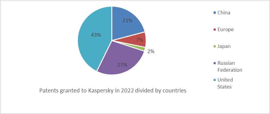 Tokom ove godine, kompaniji Kaspersky odobreno je čak 111 patenata,a podnela je još 54 prijave. Od nedavno objavljenih patenata, 47 je dodelio Zavod za patente i žigove Sjedinjenih Država, 30 Ruski zavod za patente i žigove, 23 Kineska nacionalna uprava za intelektualnu svojinu, osam Evropski zavod za patente i dva Japanski zavod za patente.