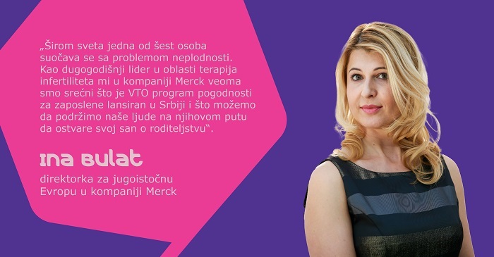 „Širom sveta jedna od šest osoba suočava se sa problemom neplodnosti. Kao dugogodišnji lider u oblasti terapija infertiliteta mi u kompaniji Merck razumemo finansijski i emocionalni teret koji ovaj put može imati na pojedinca, kao i na porodicu. Veoma smo srećni što je VTO program pogodnosti za zaposlene lansiran u Srbiji i što možemo da podržimo naše ljude na njihovom putu da ostvare svoj san o roditeljstvu“, izjavila je Ina Bulat, direktorka za jugoistočnu Evropu u kompaniji Merck.