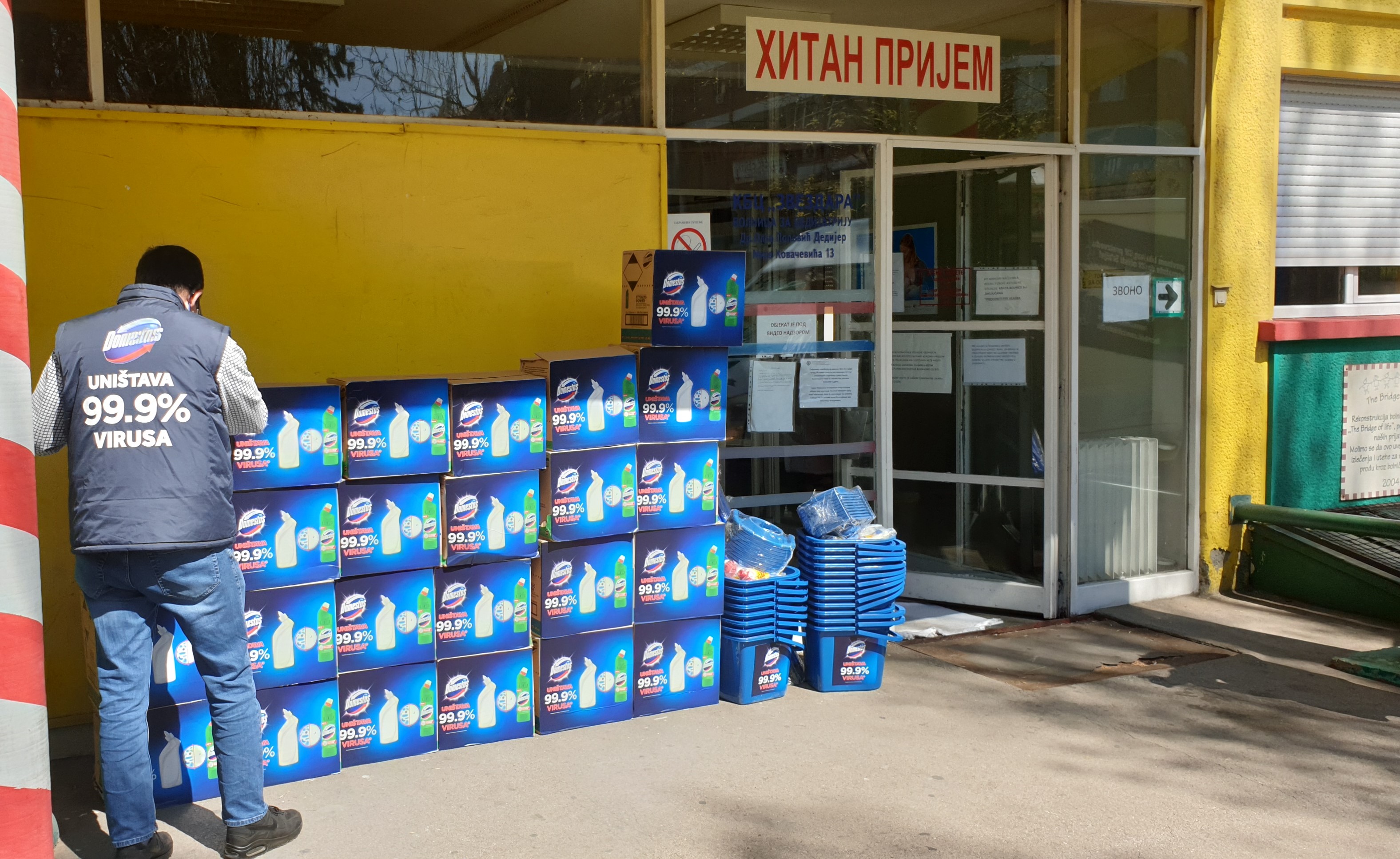 Ova donacija je upućena nakon inicijalne isporuke više od 2700 proizvoda Domestos Extended Power Pine na bazi hlora, kao i 100 kofa, 100 džogera i 300 pari rukavica za profesionalni rad zdravstvenim ustanovama Kliničkog Centra Srbije, Instituta za onkologiju i radiologiju Srbije i Gerontološkim centrima u Beogradu, Obrenovcu, Pančevu i Smederevu, kao i Prihvatilištu za odrasla i stara lica u Kumodraškoj ulici u Beogradu. Ukupno je isporučeno više od 6420 boca proizvoda Domestos, koji je namenjen i preporučen za pravilnu dezinfekciju površina kako u objektima javnog zdravlja, tako i u domaćinstvima.
