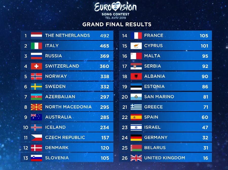 Zanimljivo, srpski žiri nije dao nijedan poen Holandiji.