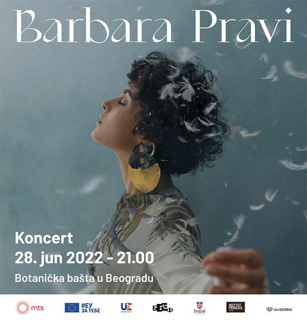 Barbara Pravi, najaktuelnija zvezda savremene francuske šansone, dolazi u Srbiju, zemlju svojih predaka, i održaće koncert u okviru BELEF-a, u Botaničkoj bašti, 28. juna 2022, sa početkom u 21 sat.