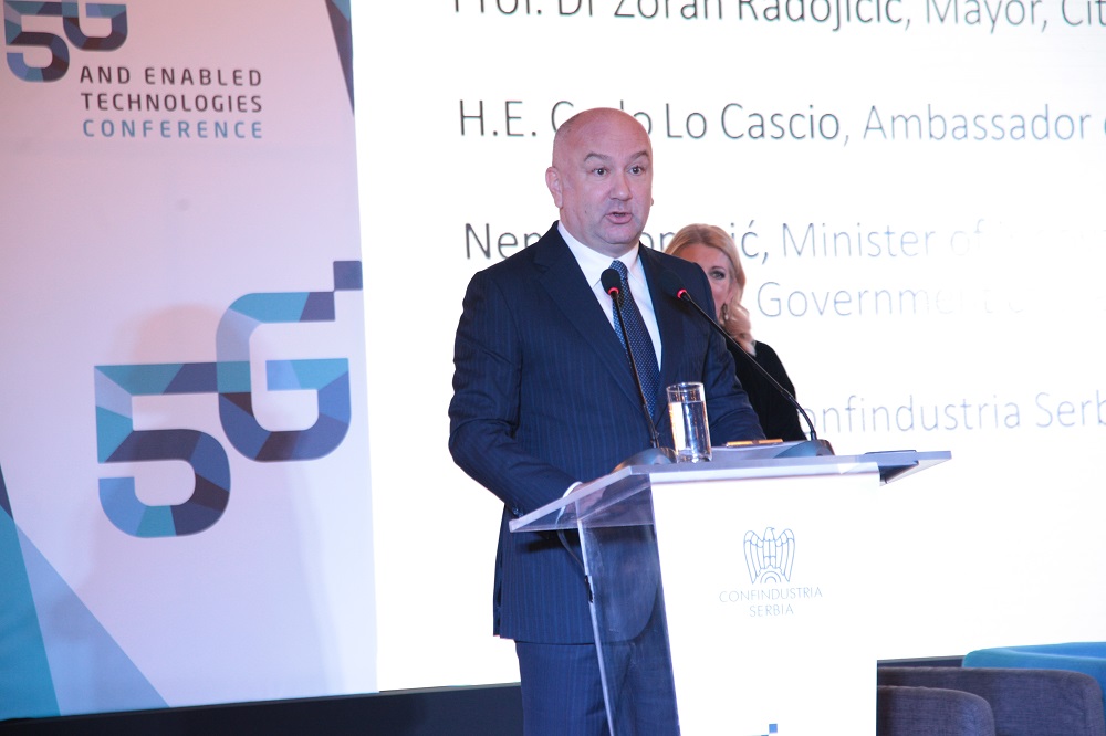Ambasador Italije Karlo Lo Kašo je istakao da prisustvo ministra Popovića na 5G konferenciji pokazuje volju Vlade Srbije za saradnju sa italijanskom poslovnom zajednicom. „ 2019. godina je za bilateralne veze Srbije i Italije veoma važna godina, jer naše dve zemlje slave 140 diplomatskih odnosa i 10 godina strateškog partnerstva Italije i Srbije, istakao je ambasador i dodao da se u Italiji već testiraju neke aplikacije koje se zasnivaju na 5G tehnologiji u velikim gradovima poput Rima, Milana, Torina i Napulja. Jedan od pilot projekata, nazvan „BariMatera 5G“, finansiran od strane Ministarstva ekonomskog razvoja sa više od šezdeset miliona evra uključuje 52 javna i privatna partnera s ciljem da Bari i Matera postanu dva od prvih „5G gradova“ u Evropi. „Zato me posebno raduje što grad Beograd koji je domaćin ove konferencije Konfindustrije i grad Niš danas učestvuju na ovom skupu. U ne tako dalekoj budućnosti, srpski i italijanski gradovi će biti još bliži zahvaljujući tehnologiji 5G,“ zaključio je ambasador Lo Kašo.