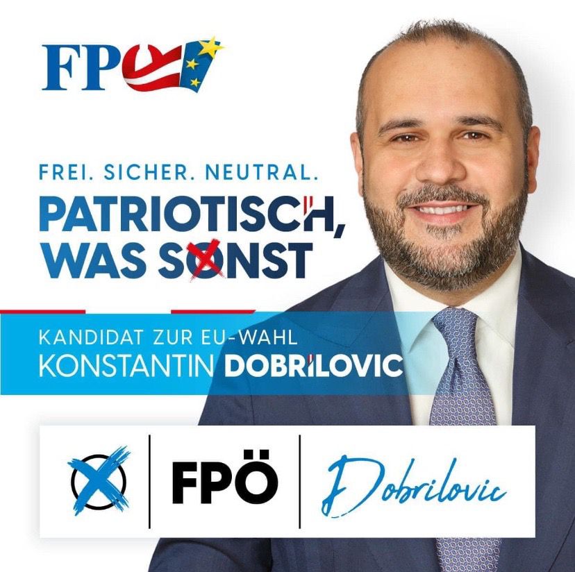 Konstantin Dobrilović se nalazi na 11.mestu liste FPÖ, čiji je nosilac Harald Vilimski (Harald Vilimsky) iz iste stranke. Izbori za Evropski parlament se održavaju 9. juna u Austriji. Dobrilović je jedini srpski predstavnik u celoj Austriji koji je visokopozioniran na nekoj izbornoj listi od gotovo svih stranaka koje imaju svoje kanidate na ovim izborima.